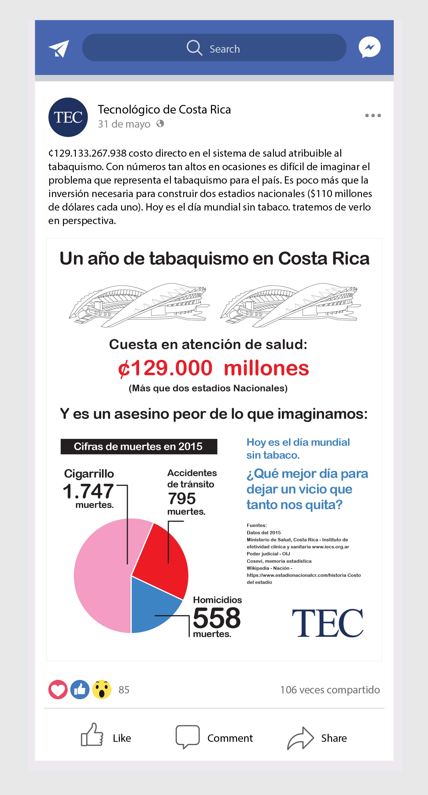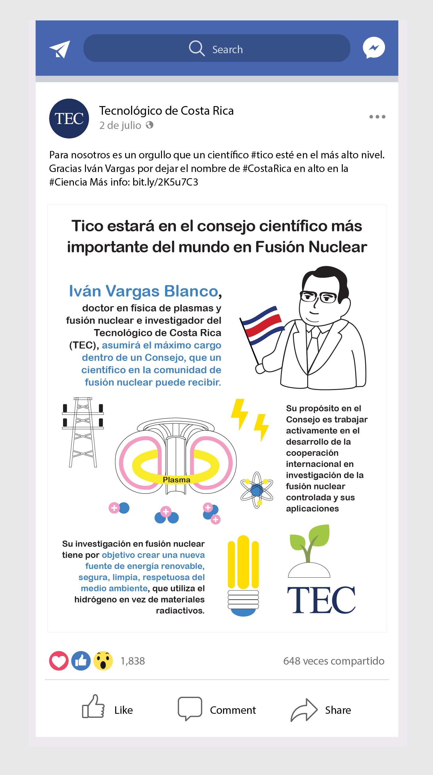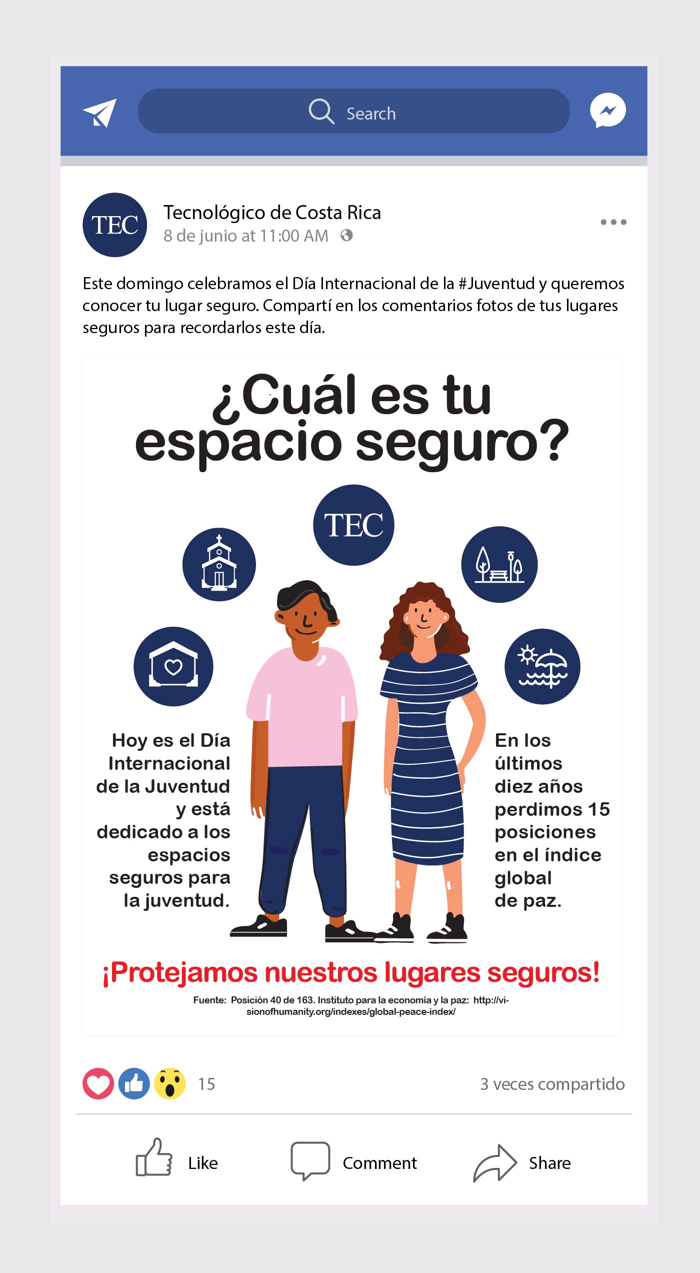 En conjunto con la oficina de mercadeo y comunicación del Instituto Tecnológico Costarricense, se creó una estrategia digital para redes sociales, específicamente para Facebook y Twitter.